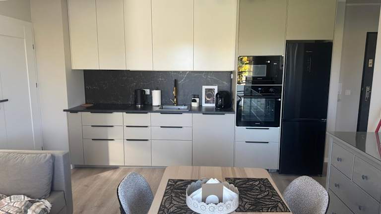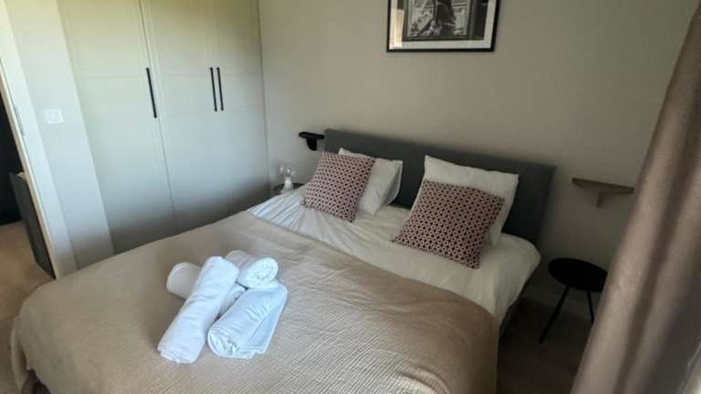 Die Ferienwohnung umfasst 1 Schlafzimmer und ein Wohnzimmer. Sie ist mit einer voll ausgestatteten Küche ausgestattet, die einen Kühlschrank und eine Kaffeemaschine beinhaltet. Zudem gibt es 1 Badezimmer, das mit einer Dusche und einem Haartrockner ausgestattet ist. Handtücher und Bettwäsche werden bereitgestellt.