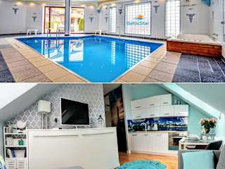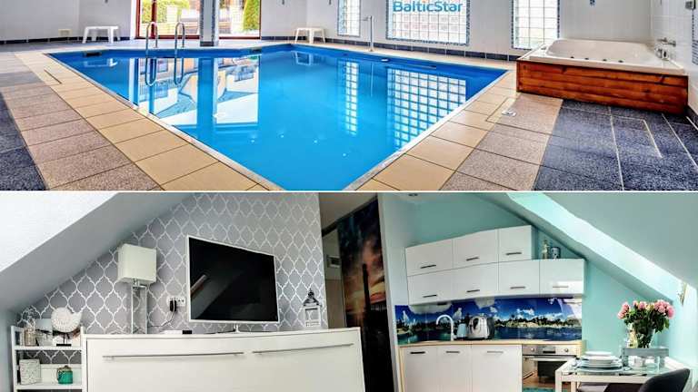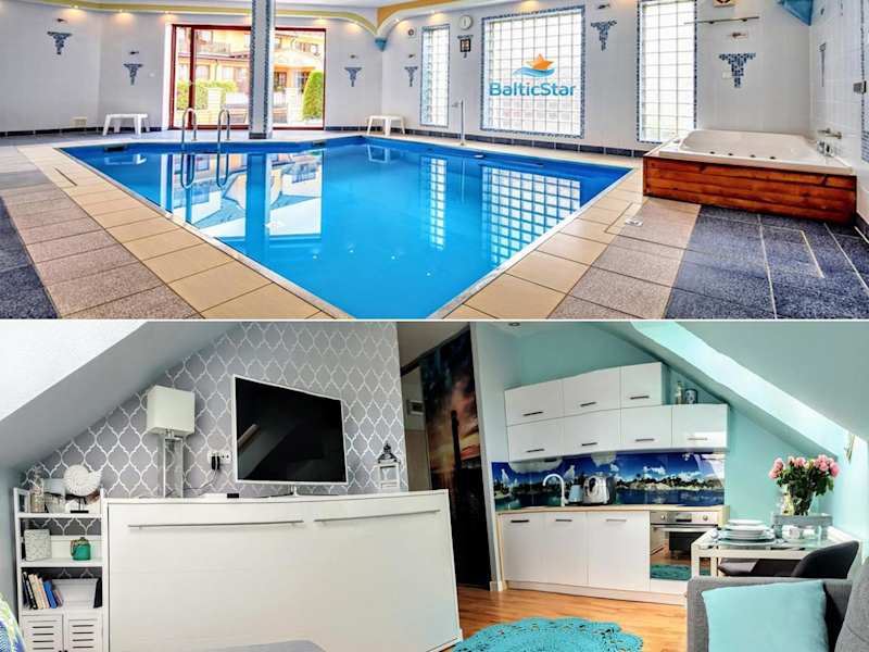 Verbringen Sie einen unvergesslichen Urlaub im Apartament Baltic Star Rewal, das direkt am Strand in Rewal liegt und einen eigenen Pool bietet. Genießen Sie die kostenfreien Privatparkplätze und erkunden Sie die Umgebung beim Schnorcheln und Radfahren. Das Apartment ist modern und komfortabel eingerichtet und verfügt über eine voll ausgestattete Küche sowie ein Wohnzimmer mit Flachbild-Sat-TV. Entspannen Sie im Innenpool, der Sauna und dem Whirlpool des Apartments. Der Strand Rewal ist nur 200 m entfernt und das Rathaus erreichen Sie nach einer kurzen Fahrt. Der Flughafen Heringsdorf ist 72 km entfernt.