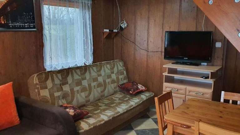 Das Ferienhaus im Apartament całoroczny domek grill verfügt über zwei Schlafzimmer, ein gemütliches Wohnzimmer und eine gut ausgestattete Küche. Die Terrasse bietet einen herrlichen Blick auf den Fluss und ist der ideale Ort, um die Natur zu genießen. Das Ferienhaus ist mit einem Flachbild-TV, einem Kühlschrank, einem Geschirrspüler und einem Badezimmer mit Badewanne ausgestattet.