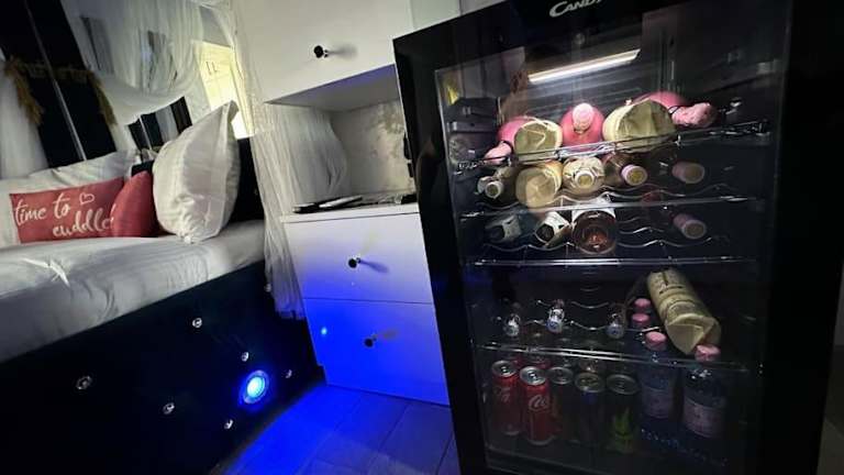 Das Apartment verfügt über ein luxuriöses Schlafzimmer mit Zugang zu einem Balkon. Das klimatisierte Apartment ist mit einem Flachbild-TV, einer voll ausgestatteten Küche, einem gemütlichen Sitzbereich und einer Waschmaschine ausgestattet. Das Badezimmer bietet eine Dusche, einen Whirlpool und eine Badewanne.