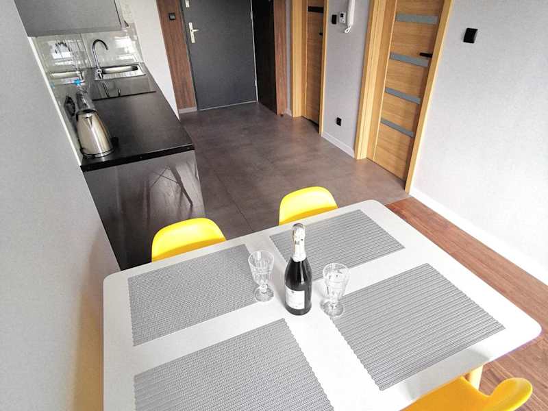 Das Apartament Cyprys 2 verfügt über ein gemütliches Schlafzimmer mit bequemen Betten und ausreichend Stauraum. Das Wohnzimmer bietet einen Flachbild-TV und einen komfortablen Sitzbereich zum Entspannen. Die Küche ist gut ausgestattet mit einem Kühlschrank und einem Essbereich, so dass Sie Ihre Mahlzeiten bequem zubereiten und genießen können. Handtücher und Bettwäsche werden gestellt, um Ihren Aufenthalt so angenehm wie möglich zu gestalten.