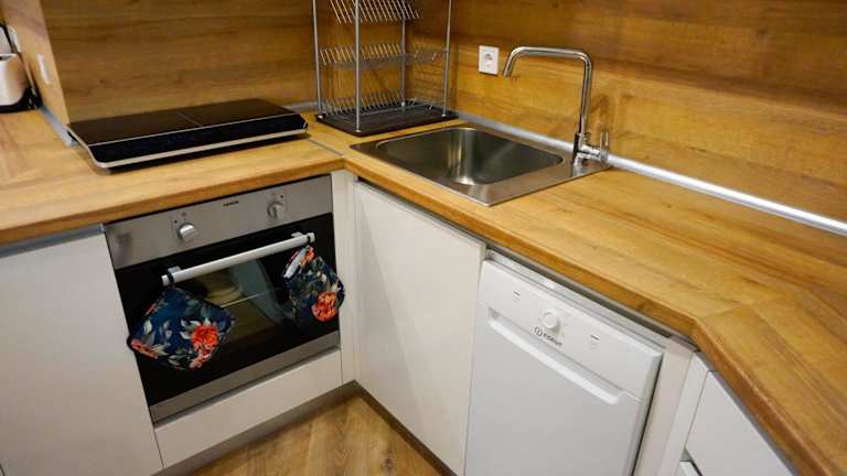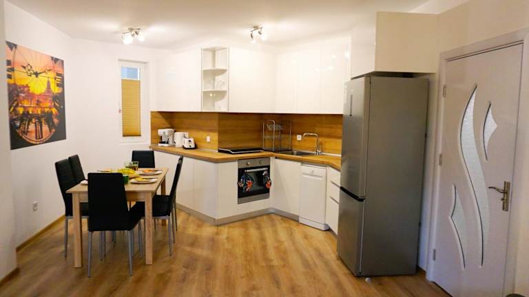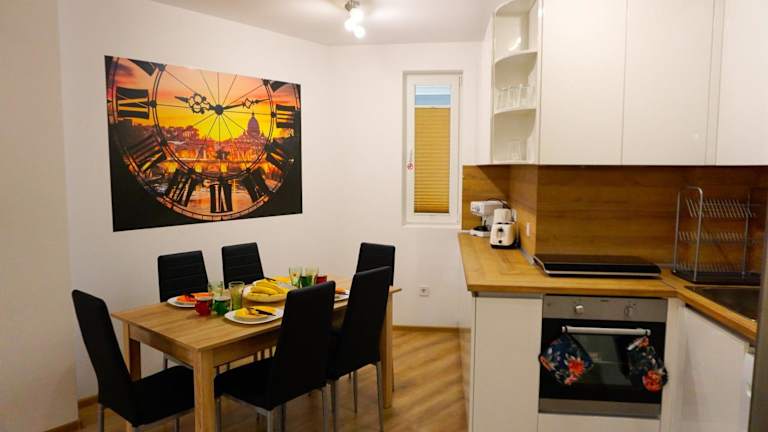 Das Apartment verfügt über eine voll ausgestattete Küche, in der die Gäste ihre eigenen Mahlzeiten zubereiten können. Alternativ gibt es in der Umgebung viele Restaurants und Cafés, in denen Sie lokale und internationale Küche genießen können.