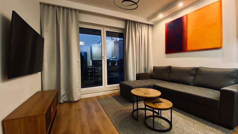 Apartament Dekerta garaż, duży taras, smart tv bietet Übernachtungsmöglichkeiten in einer Ferienwohnung mit Balkon und kostenlosem WLAN. Die Unterkunft ist durch eine Terrasse und einen kostenlosen Privatparkplatz ergänzt, und es wird Wert auf Nichtraucherbereiche gelegt. Die Unterkunft wird von einem privaten Gastgeber betrieben, was eine persönliche Atmosphäre schafft.