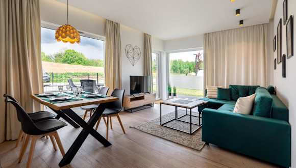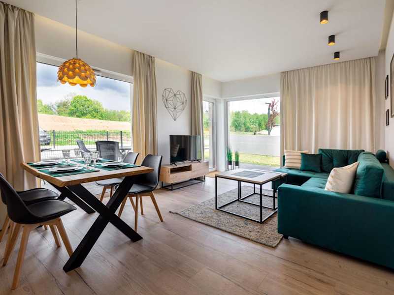 Apartament Kolory Ziemi bietet kostenloses WLAN, einen Garten, einen Kinderspielplatz und kostenlose Parkmöglichkeiten. Die Unterkunft ist mit einem Flachbild-TV ausgestattet und verfügt über ein eigenes Badezimmer mit Dusche und Pflegeprodukten. Eine Terrasse ist ebenfalls vorhanden.