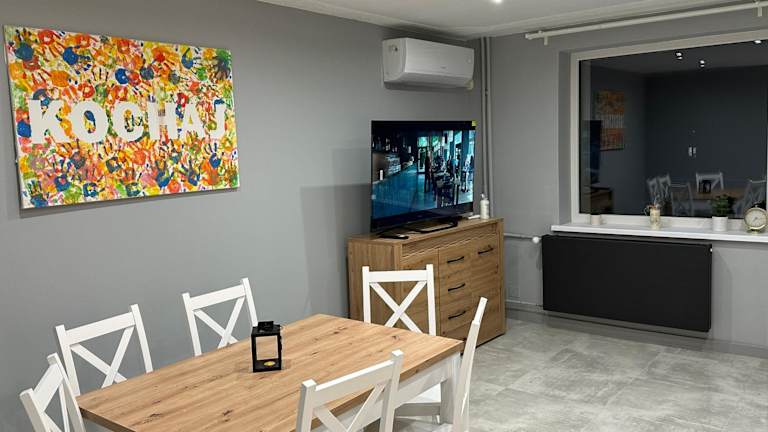 Apartament Kościuszko ist eine Ferienwohnung, die modernen Komfort mit praktischen Annehmlichkeiten kombiniert. Die Unterkunft bietet einen Balkon und kostenlosen Internetzugang. Es handelt sich um eine klimatisierte Ferienwohnung, die für einen angenehmen Aufenthalt sorgt.