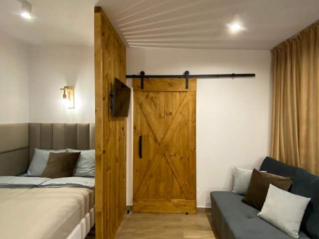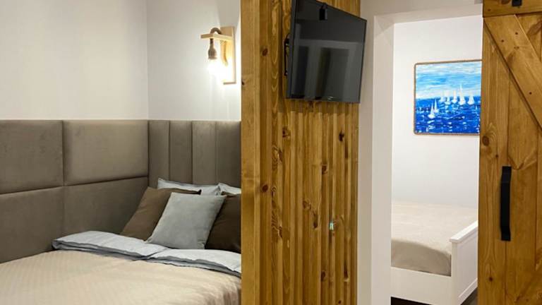 Die Unterkunft befindet sich direkt am Strand in Hel, nur 700 Meter vom Stadtstrand und 1,1 Kilometer vom Strand Cypel entfernt. Der Lech-Wałęsa-Flughafen Danzig ist 89 Kilometer entfernt.