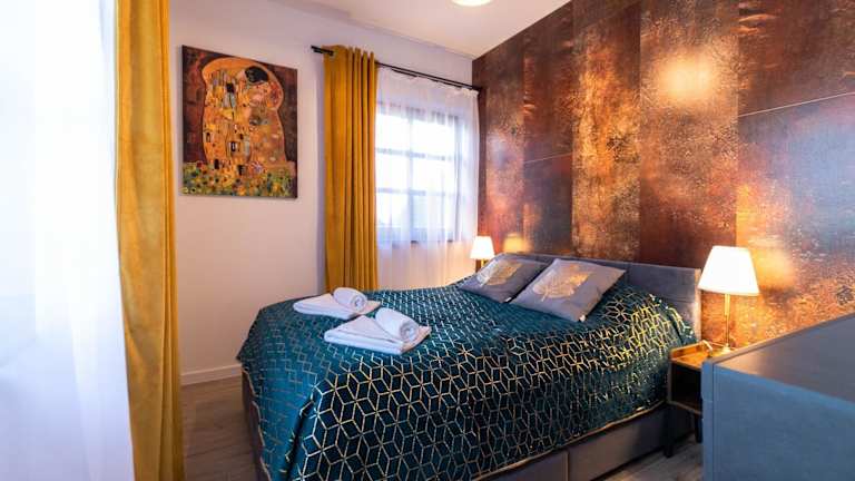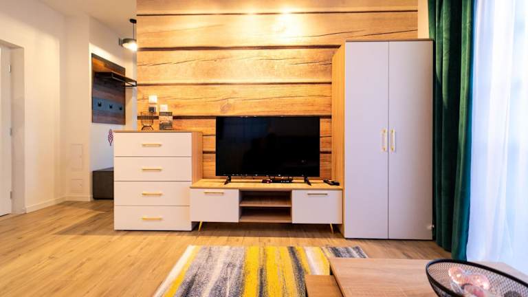 Das Apartment verfügt über ein Schlafzimmer, ein Wohnzimmer und ein Badezimmer. Es bietet Platz für bis zu 2 Personen und ist ideal für Paare oder Alleinreisende. Das Schlafzimmer ist gemütlich eingerichtet und sorgt für erholsamen Schlaf. Das Wohnzimmer ist stilvoll eingerichtet und verfügt über einen Flachbild-TV für Unterhaltung. Die voll ausgestattete Küche bietet Ihnen die Möglichkeit, Ihre eigenen Mahlzeiten zuzubereiten, und das moderne Badezimmer verfügt über eine Dusche. Handtücher und Bettwäsche werden gestellt, um Ihren Aufenthalt so angenehm wie möglich zu gestalten.