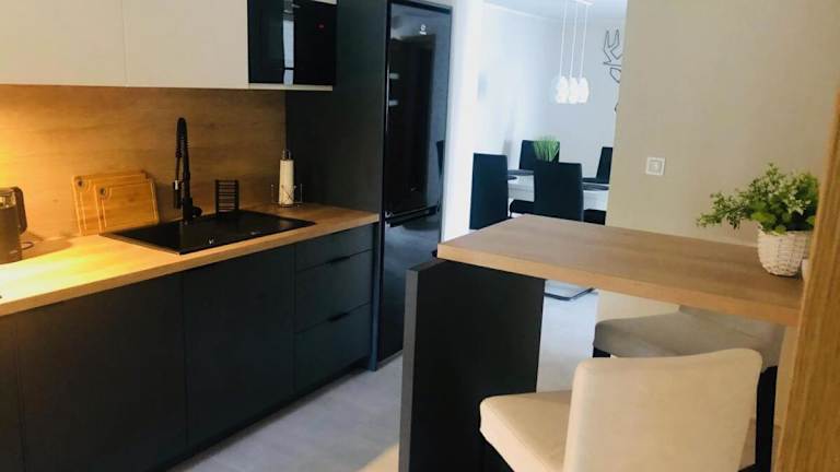 Das Apartment verfügt über zwei gemütliche Schlafzimmer, ein geräumiges Wohnzimmer und ein modernes Badezimmer. Die gut ausgestattete Küche ermöglicht es Ihnen, Ihre Lieblingsgerichte zuzubereiten. Genießen Sie den Blick auf den Garten von der Terrasse aus und nutzen Sie das kostenfreie WLAN, um in Verbindung zu bleiben. Handtücher und Bettwäsche werden gestellt, um Ihren Aufenthalt so angenehm wie möglich zu gestalten.