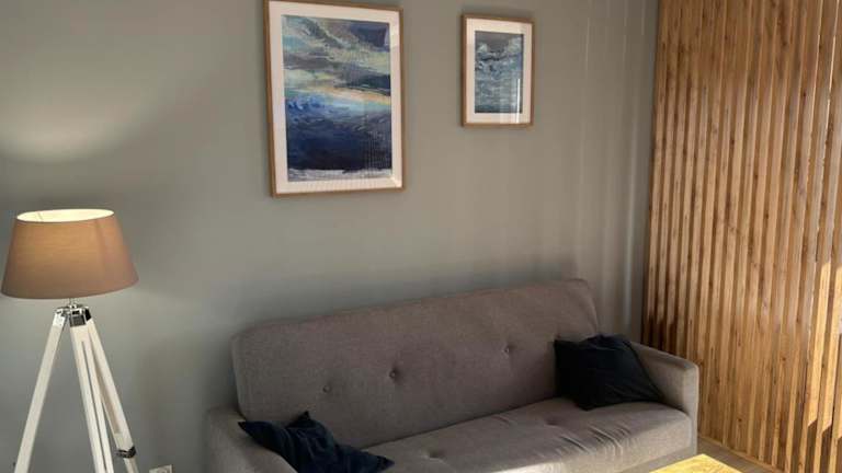 Die Ferienwohnung besteht aus einem Schlafzimmer, einem Wohnzimmer und einer voll ausgestatteten Küche, die mit einem Kühlschrank und einer Kaffeemaschine ausgestattet ist. Ein Badezimmer mit Dusche und Haartrockner ist ebenfalls vorhanden. Handtücher und Bettwäsche werden zur Verfügung gestellt.