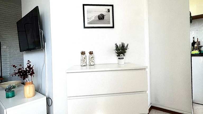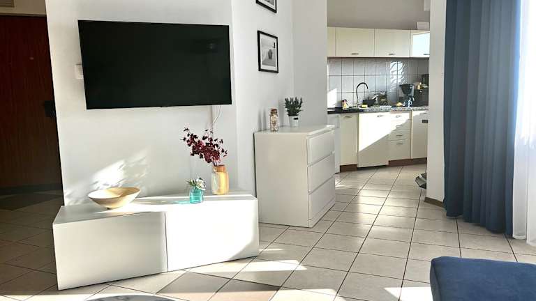 Die Ferienwohnung beinhaltet 1 Schlafzimmer und ein Wohnzimmer. Sie ist mit Klimaanlage und einer voll ausgestatteten Küche ausgestattet, die einen Kühlschrank und eine Kaffeemaschine enthält. Zudem gibt es ein Badezimmer mit Dusche und Haartrockner. Handtücher und Bettwäsche werden bereitgestellt.