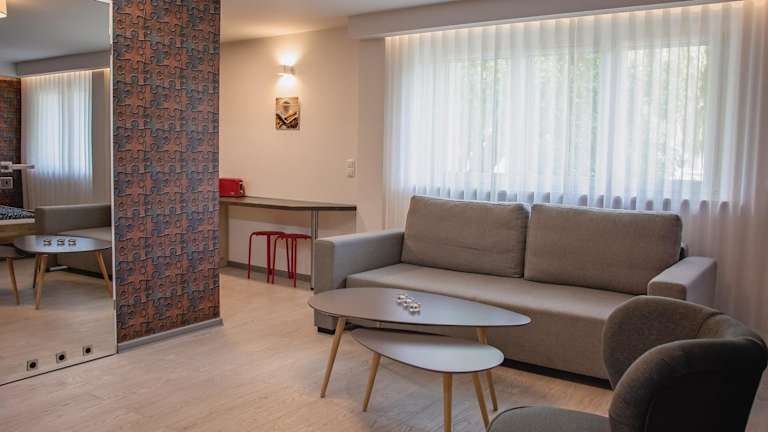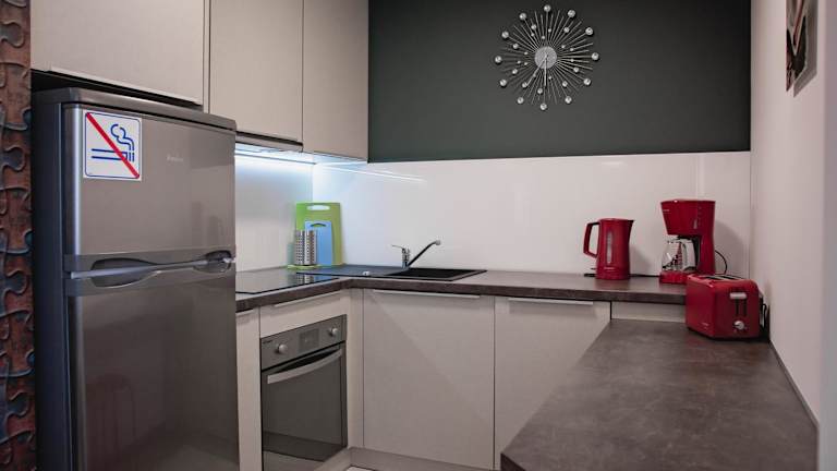 Das Apartment verfügt über ein Schlafzimmer und bietet Platz für eine komfortable Übernachtung. Die Küchenzeile ist gut ausgestattet mit einem Kühlschrank und einem Geschirrspüler. Das moderne Badezimmer verfügt über eine Dusche, einen Haartrockner und eine Waschmaschine. Handtücher und Bettwäsche werden gestellt, um Ihnen den Aufenthalt so angenehm wie möglich zu gestalten.