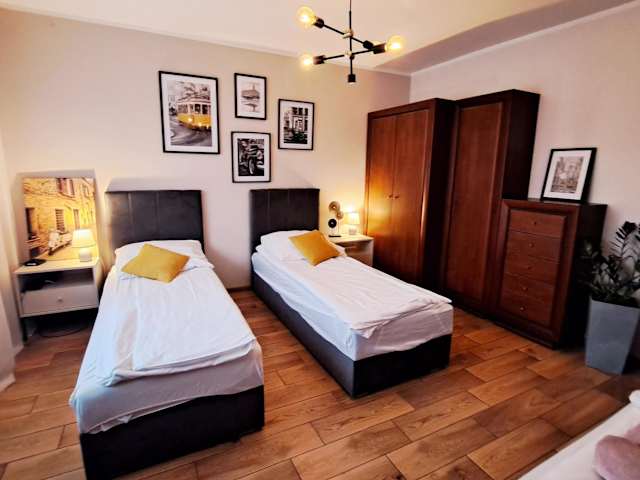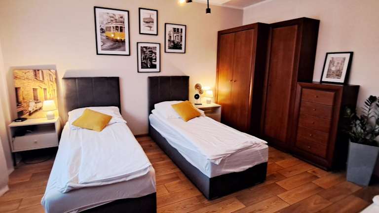 Das klimatisierte Apartment im Apartament pod Miastem verfügt über 2 Schlafzimmer, die Ihnen einen erholsamen Schlaf bieten. Das Apartment verfügt auch über einen gemütlichen Wohnbereich, in dem Sie sich entspannen und Ihre Lieblingssendungen auf dem Flachbild-Kabel-TV genießen können. Die gut ausgestattete Küche bietet Ihnen die Möglichkeit, Ihre Mahlzeiten selbst zuzubereiten. Handtücher und Bettwäsche werden gestellt, um Ihren Aufenthalt so angenehm wie möglich zu gestalten.