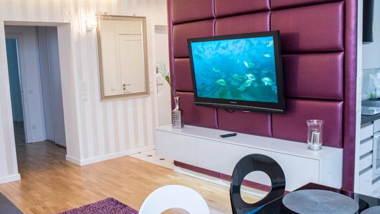 Die Ferienwohnung verfügt über ein Schlafzimmer, eine gut ausgestattete Küche mit einem Kühlschrank und einem Geschirrspüler, ein Wohnzimmer und einen Flachbild-TV. Handtücher und Bettwäsche werden zur Verfügung gestellt.