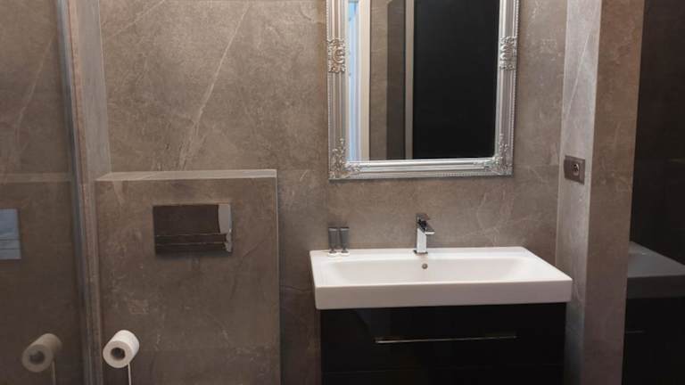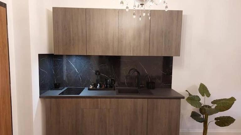 Die Ferienwohnung umfasst ein Schlafzimmer, ein Wohnzimmer mit Flachbild-TV und Satellitenkanälen, eine voll ausgestattete Küche mit Kühlschrank und Herdplatte sowie ein Badezimmer mit Dusche. Handtücher und Bettwäsche sind verfügbar. Eine Terrasse ergänzt das Angebot.