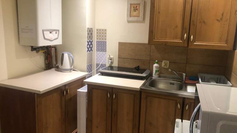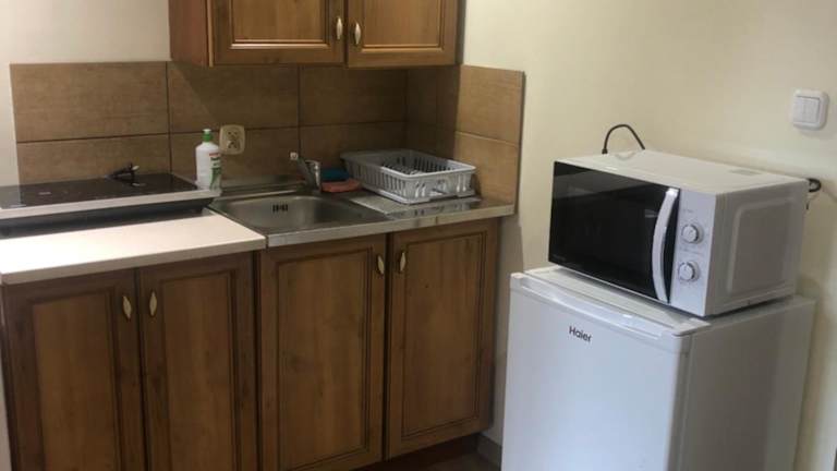 Das Apartment bietet ein komfortables Schlafzimmer, ein gemütliches Wohnzimmer und eine voll ausgestattete Küchenzeile. Die Küche verfügt über einen Kühlschrank und einen Wasserkocher, so dass Sie sich ganz bequem selbst verpflegen können. Das Apartment ist geschmackvoll eingerichtet und bietet einen herrlichen Blick auf die Stadt. Kostenloses WLAN ist in allen Bereichen verfügbar. Handtücher und Bettwäsche werden gestellt, um Ihnen einen angenehmen Aufenthalt zu ermöglichen.
