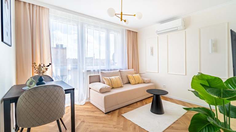 Apartament Przytulny, Klimatyzacja, PW INVEST HOME ist eine moderne Ferienwohnung, die über einen Balkon verfügt. Diese Unterkunft bietet verschiedene Annehmlichkeiten, darunter kostenloses WLAN und eine Klimaanlage.
