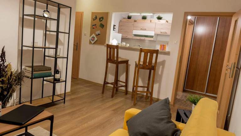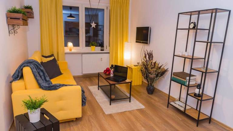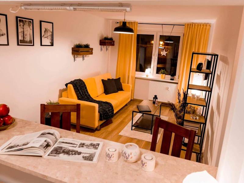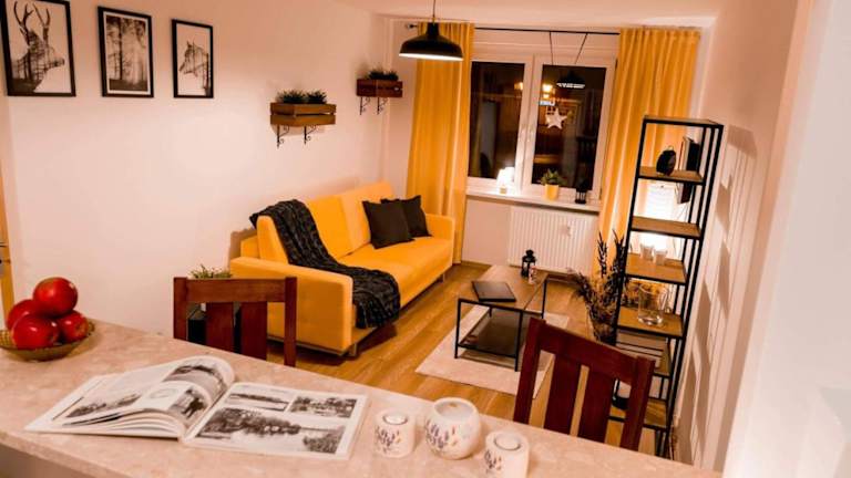 Das Apartament Słoneczny verfügt über ein gemütliches Schlafzimmer, in dem Sie sich nach einem ereignisreichen Tag ausruhen können. Das Wohnzimmer bietet einen komfortablen Raum zum Entspannen und Verweilen. Das Badezimmer ist mit einer Dusche ausgestattet und Handtücher und Bettwäsche werden gestellt, um Ihnen einen angenehmen Aufenthalt zu ermöglichen.