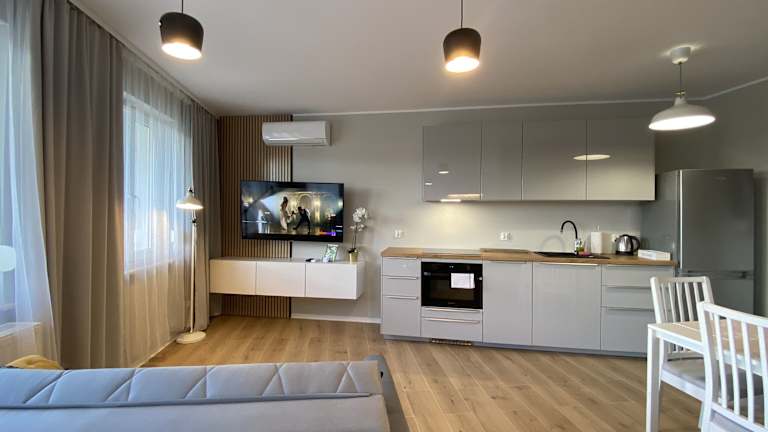 Das Apartament Toruń bietet ein komfortables und gut ausgestattetes Apartment zur Selbstverpflegung. Das Badezimmer verfügt über eine Whirlpool-Badewanne, in der die Gäste entspannen können. Die Terrasse bietet einen angenehmen Außenbereich zum Verweilen. Der Sitzbereich ist mit Kabel-TV ausgestattet, damit die Gäste ihre Lieblingssendungen genießen können. Die Küchenzeile ist mit einem Geschirrspüler und einer Mikrowelle ausgestattet, um die Zubereitung von Mahlzeiten zu erleichtern. Ein Haartrockner und kostenfreies WLAN sind weitere Annehmlichkeiten, die den Gästen zur Verfügung stehen.