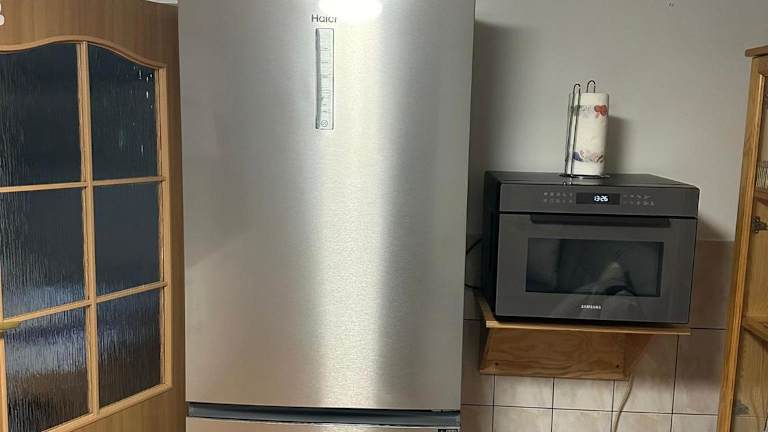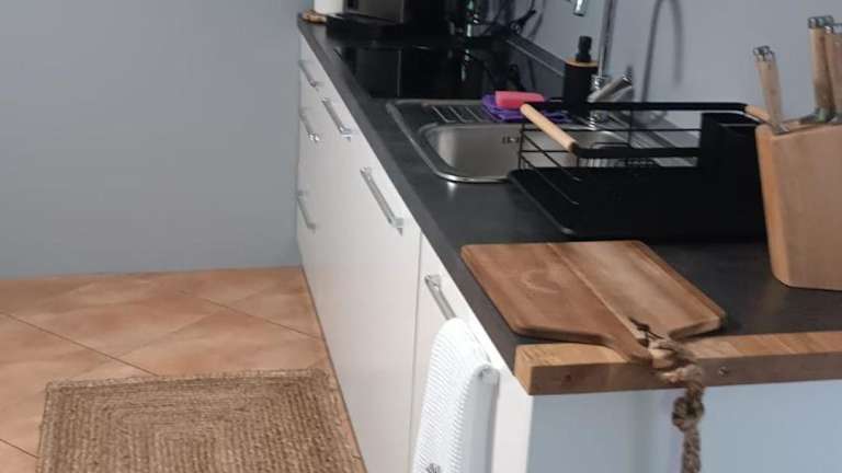 Eine voll ausgestattete Küchenzeile mit einem Kühlschrank und einer Kaffeemaschine steht zur Verfügung.
