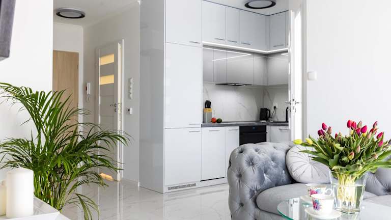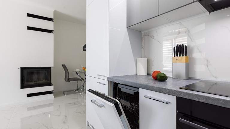 Die Ferienwohnung umfasst 2 Schlafzimmer, eine Küche mit Kühlschrank und Geschirrspüler, einen Flachbild-TV, einen Sitzbereich sowie ein Badezimmer mit Dusche.