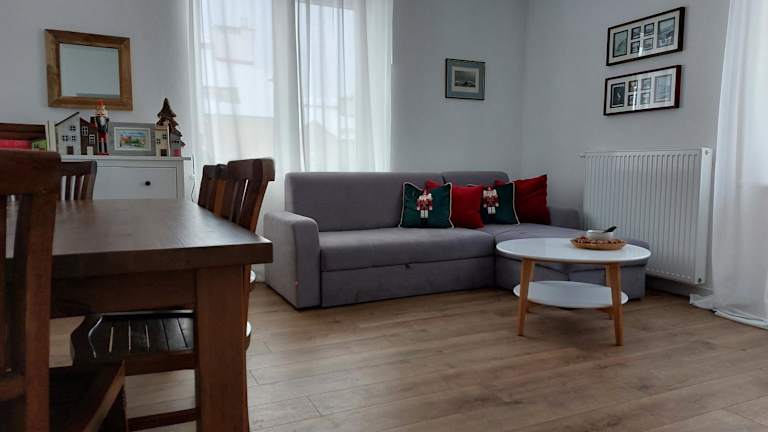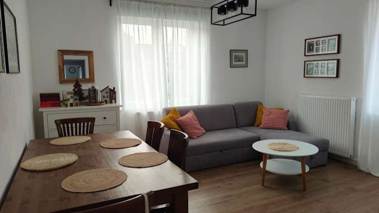 Apartament z Napoleonem w tle bietet Übernachtungsmöglichkeiten in einer Ferienwohnung, die in einem Gebäude aus dem Jahr 1932 untergebracht ist. Die Ferienwohnung ist modern ausgestattet und bietet kostenfreies WLAN sowie einen Flachbild-TV.