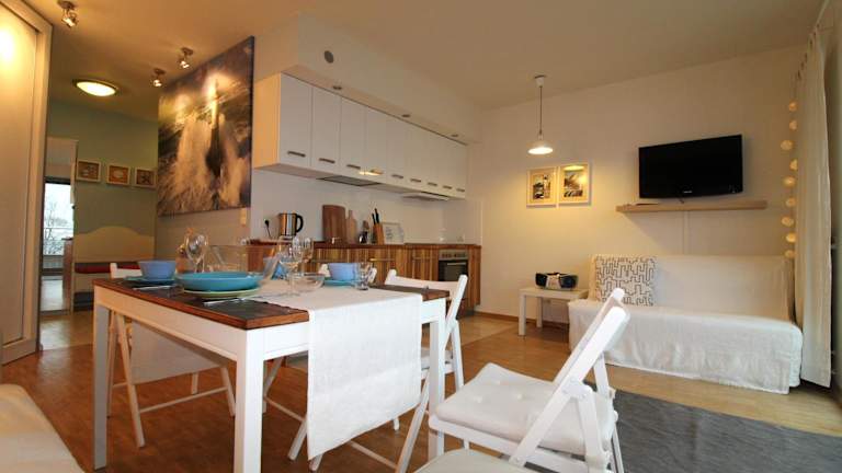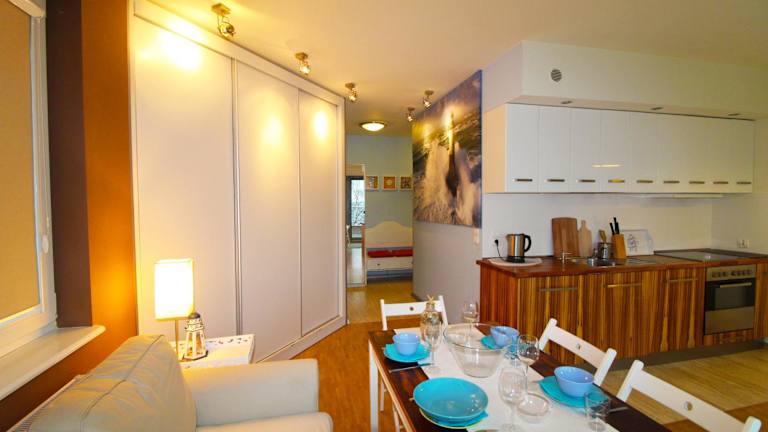 Die Unterkunft befindet sich in Puck, nur 300 m vom Strand Dzika Plaża entfernt, sowie 26 km von Gdynia und 29 km von der Werft Gdynia. Der Lech-Wałęsa-Flughafen Danzig ist 53 km entfernt. In der Nähe sind zahlreiche Freizeitmöglichkeiten wie Fahrradfahren gegeben.