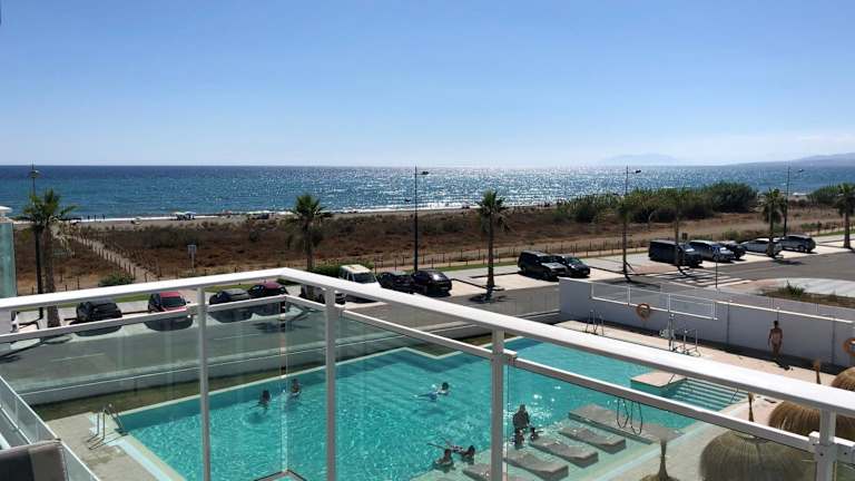 Apartamento 1º Línea de Playa - Duna Beach bietet einen Außenpool mit Meerblick und directe Lage am Strand. Die Unterkunft ermöglicht den Zugang zu einer Terrasse und bietet Annehmlichkeiten wie kostenlosen Privatparkplatz sowie kostenfreies WLAN.