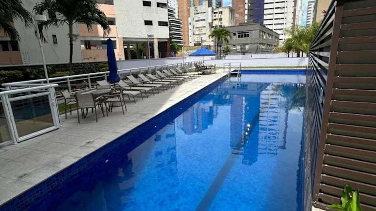 Das Hotel Apartamento Mobiliado no My Way Fortaleza - 2 Quartos a 1 quadra da Beira-Mar bietet seinen Gästen eine Vielzahl von Freizeiteinrichtungen. Entspannen Sie sich im Außenpool oder trainieren Sie im Fitnesscenter. Der Wellnessbereich des Hotels lädt mit Hamam, Sauna und Whirlpool zum Verwöhnen ein. Für Kinder gibt es einen Miniclub mit verschiedenen Aktivitäten sowie einen Spielplatz.
