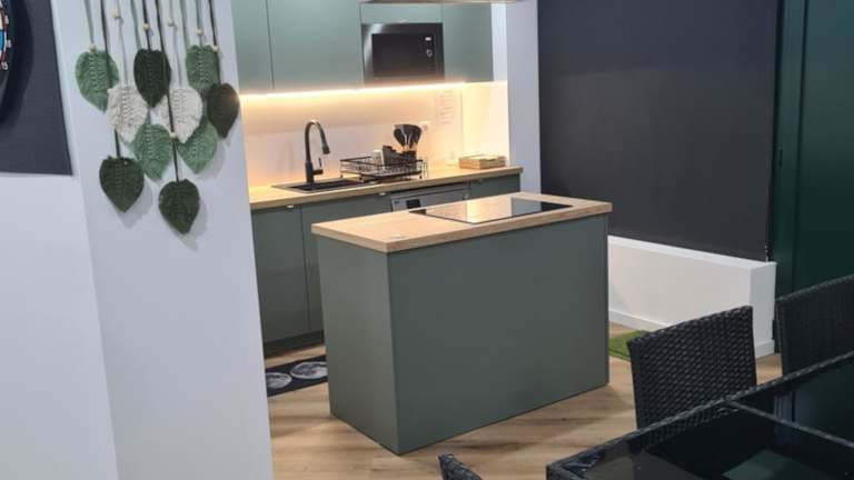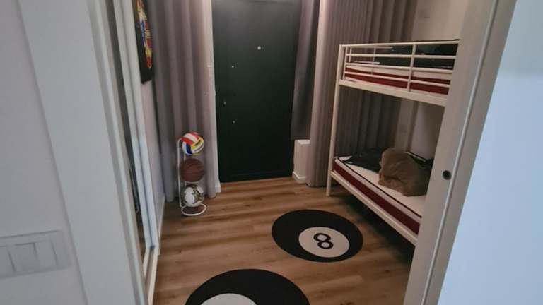 Die Ferienwohnung umfasst ein Schlafzimmer, zwei Badezimmer mit Dusche, ein Wohnzimmer und einen Essbereich. Die Küche ist mit einem Kühlschrank, Geschirrspüler und Ofen ausgestattet. Zudem stehen Handtücher und Bettwäsche zur Verfügung. Die Unterkunft verfügt auch über eine Spielekonsole.