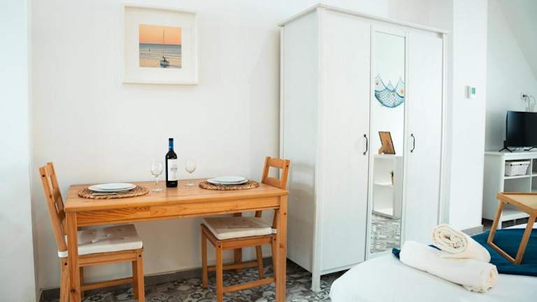 Das Apartamento a 7 minutos de la playa y cerca de la estación de autobús bietet Übernachtungsmöglichkeiten in einer klimatisierten Ferienwohnung. Die Unterkunft verfügt über einen Garten, eine Terrasse und eine Bar sowie kostenloses WLAN.