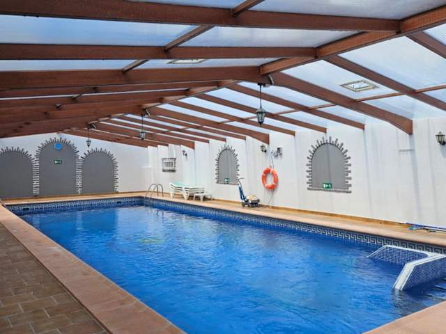 Die Ferienwohnung bietet einen Innenpool, der ganzjährig genutzt werden kann, sowie einen Garten für die Gäste. Darüber hinaus sind Sonnenliegen am Pool verfügbar.
