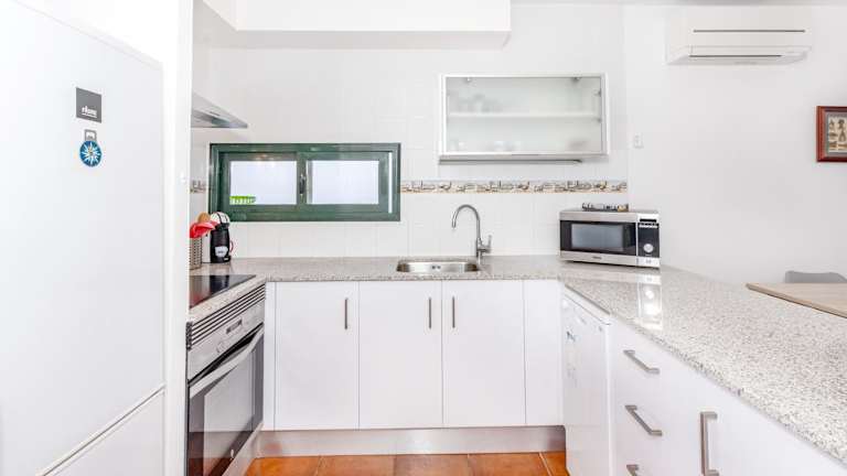 Das Ferienhaus umfasst zwei separate Schlafzimmer und ist mit einer voll ausgestatteten Küche ausgestattet, die einen Kühlschrank und einen Geschirrspüler beinhaltet. Zudem gibt es ein Badezimmer sowie einen Fernseher. Klimaanlage ist ebenfalls vorhanden.