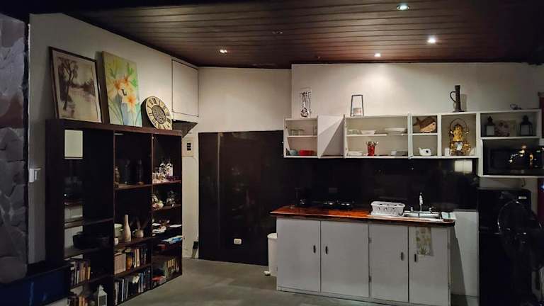 Die Unterkunft ist mit einer Küche ausgestattet, die einen Kühlschrank, eine Mikrowelle und einen Toaster umfasst.