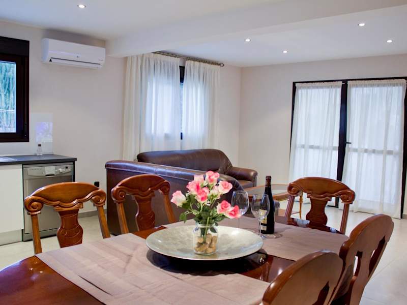 Das Ferienhaus bietet eine komfortable Unterkunft mit kostenlosem WLAN, Klimaanlage, einem Außenpool sowie einem Garten. Es können Parkplätze kostenfrei genutzt werden und es stehen sowohl Fahrradverleih als auch Autovermietung zur Verfügung. Die Unterkunft ist für Familien geeignet, da sie auch Familienzimmer anbietet.