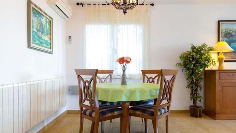 Das Apartment umfasst 4 Schlafzimmer, eine voll ausgestattete Küche mit Essbereich sowie 2 Badezimmer mit Dusche. Zur Ausstattung gehört zudem ein Fernseher.