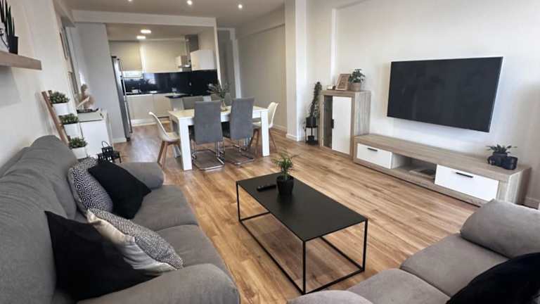 Das geräumige Apartment verfügt über drei Schlafzimmer, ein Wohnzimmer und eine voll ausgestattete Küche mit Kühlschrank und Kaffeemaschine. Das Badezimmer ist mit einer Dusche und einem Haartrockner ausgestattet. Sie können Ihren eigenen privaten Parkplatz kostenfrei nutzen.