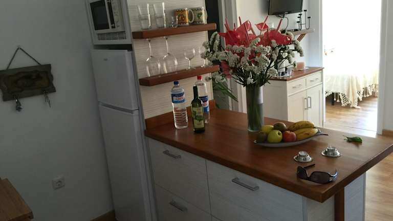 Die Ferienwohnung beinhaltet ein Schlafzimmer und ein Wohnzimmer mit einem Flachbild-TV. Die gut ausgestattete Küche verfügt über einen Kühlschrank, einen Geschirrspüler und alles, was für den täglichen Bedarf erforderlich ist. Ein Badezimmer mit Dusche gehört ebenfalls zur Ausstattung. Bettwäsche und Handtücher werden bereitgestellt.