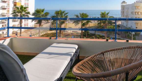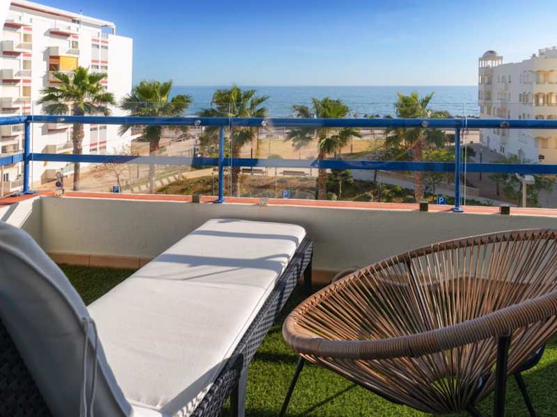 Das Apartamento Deluxe AM ist eine Ferienunterkunft mit Meerblick, die direkt am Strand gelegen ist und Zugang zu einem Balkon sowie kostenlosem WLAN bietet. Es handelt sich um ein klimatisiertes Ferienhaus mit einer voll ausgestatteten Küche und einer Terrasse.