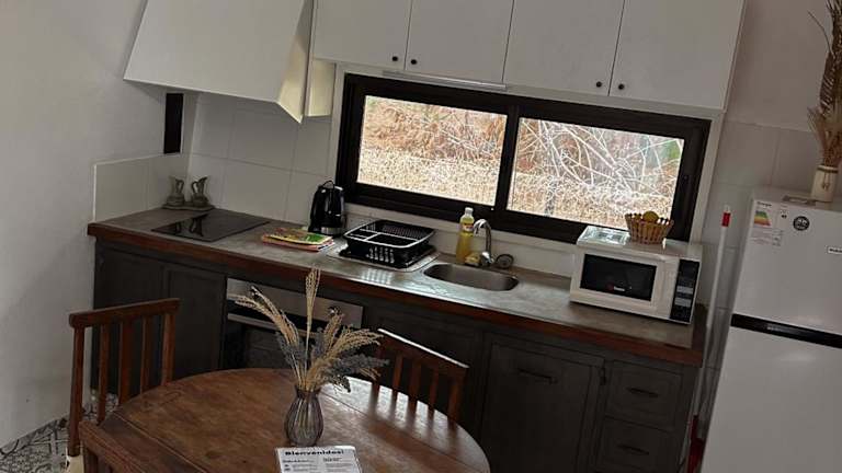 Die Ferienwohnung verfügt über ein Schlafzimmer, ein Wohnzimmer und eine voll ausgestattete Küche mit Kühlschrank und Kaffeemaschine. Ein Badezimmer mit Bidet und Dusche ist ebenfalls vorhanden. Handtücher und Bettwäsche sind verfügbar.