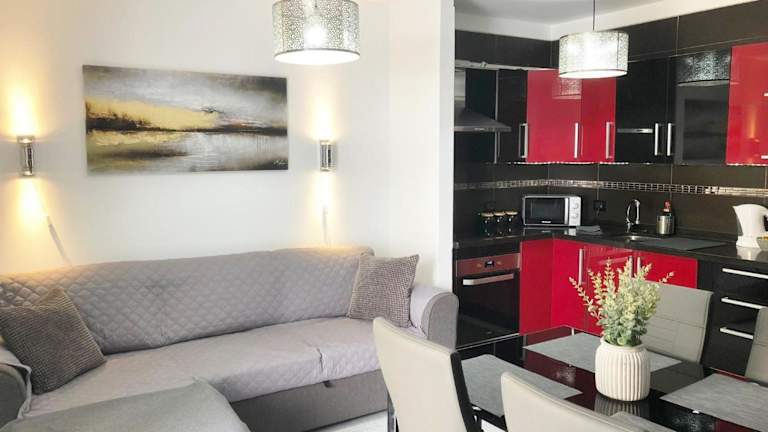 Die Ferienwohnung besteht aus zwei Schlafzimmern, einem Wohnzimmer und einer voll ausgestatteten Küche, die über einen Kühlschrank und eine Kaffeemaschine verfügt. Das Badezimmer ist mit einer Badewanne und einem Haartrockner ausgestattet. Handtücher und Bettwäsche sind in der Unterkunft verfügbar.