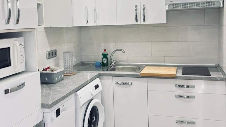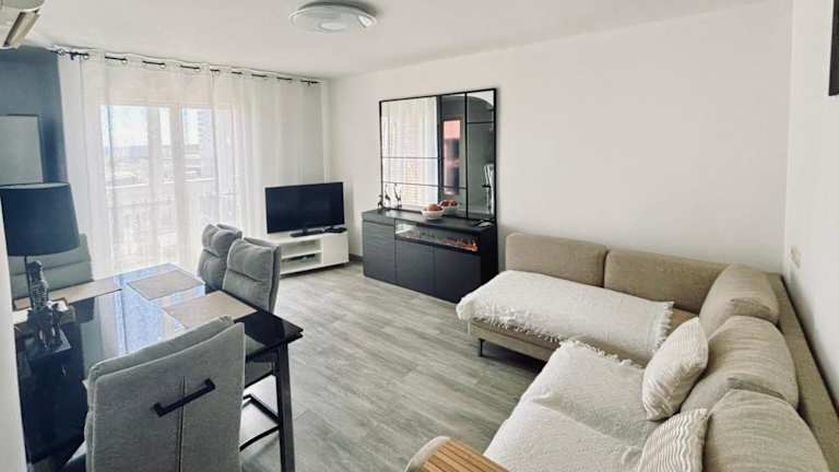 Das Apartment verfügt über zwei Schlafzimmer, eines mit einem Doppelbett und eines mit zwei Einzelbetten, sowie ein Badezimmer mit Dusche. Der Wohnbereich ist mit einem Schlafsofa, einem Esstisch und einem Flachbild-Sat-TV ausgestattet. Zur weiteren Ausstattung gehören Bettwäsche, Handtücher und eine Waschmaschine.