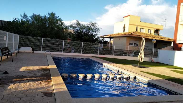 Das Apartment verfügt über einen eigenen Pool, in dem Sie schwimmen und sich erfrischen können. Sie können auch den Gartenbereich nutzen, um sich zu entspannen und die Natur zu genießen. Die Umgebung bietet viele Möglichkeiten für Aktivitäten wie Wandern und Windsurfen. Entdecken Sie die Schönheit der Region Delta del Ebro und erleben Sie unvergessliche Abenteuer.