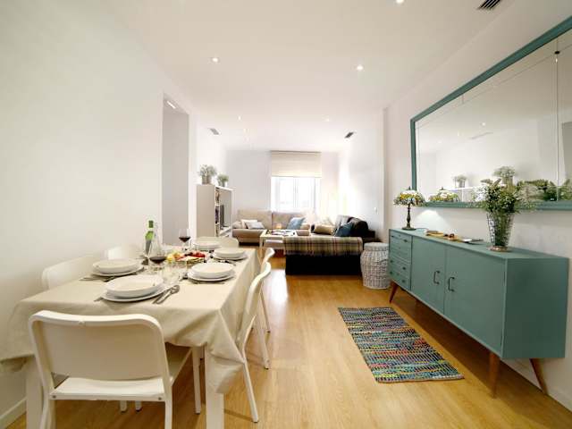 Die Wohnung umfasst 3 Schlafzimmer, ein Wohnzimmer sowie 2 Badezimmer mit Dusche und Haartrockner. Handtücher und Bettwäsche werden bereitgestellt. Zur Ausstattung gehören Klimaanlage, Heizung und Nichtraucherzimmer.