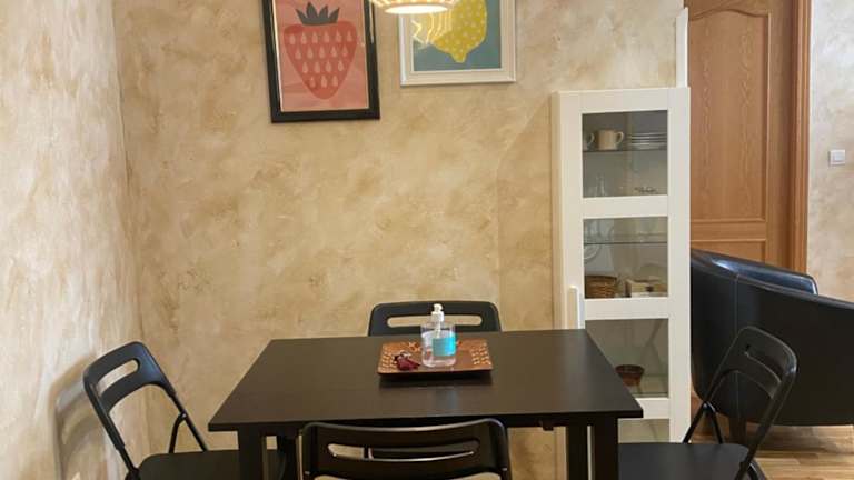 Die Ferienwohnung besteht aus einem Schlafzimmer, einem Wohnzimmer und einer voll ausgestatteten Küche mit Kühlschrank und Kaffeemaschine. Ein Badezimmer mit Dusche und kostenlosen Pflegeprodukten ist ebenfalls vorhanden. Die Bereitstellung von Handtüchern und Bettwäsche ist Teil des Angebots.