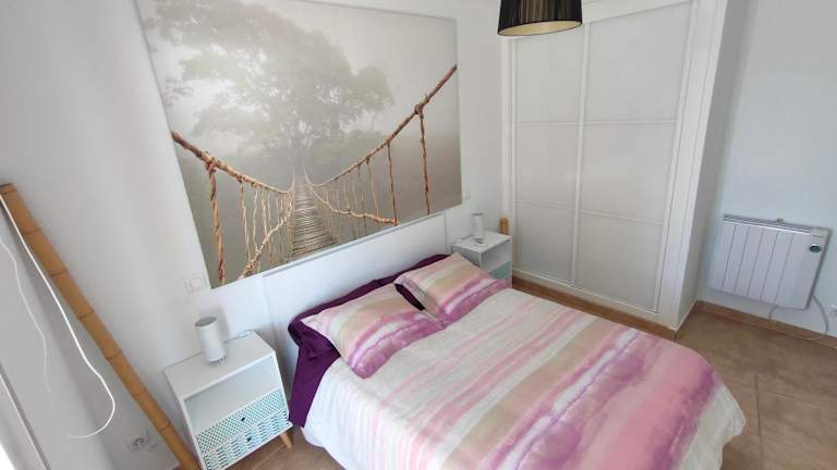 Die Ferienwohnung umfasst zwei Schlafzimmer, ein Wohnzimmer und eine voll ausgestattete Küche mit Kühlschrank und Kaffeemaschine. Ein Badezimmer mit Dusche und Bidet ist ebenfalls vorhanden. Handtücher und Bettwäsche werden bereitgestellt. Die Unterkunft ist klimatisiert und Nichtraucher, zudem gibt es einen Aufzug und Gartenmöbel auf der Terrasse.