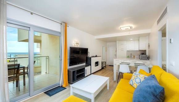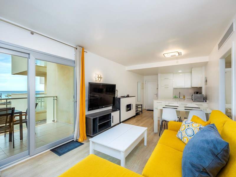 Die Ferienwohnung hat zwei Schlafzimmer, ein Badezimmer sowie eine voll ausgestattete Küche. Zur weiteren Ausstattung gehören Bettwäsche, Handtücher, ein TV mit Satellitenkanälen sowie ein Balkon mit Meerblick. Zudem sind Einrichtungen wie Heizung und Klimaanlage vorhanden. Es sind Gartenmöbel verfügbar und die Unterkunft wird zwischen den Aufenthalten desinfiziert.