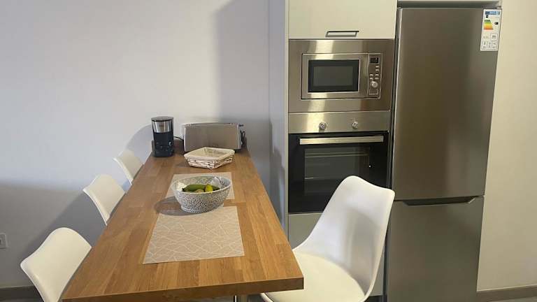 Die Ferienwohnung verfügt über eine gut ausgestattete Küche, die mit einem Kühlschrank und einer Mikrowelle ausgestattet ist. Es sind keine weiteren Informationen zu Verpflegungsmöglichkeiten vorhanden.