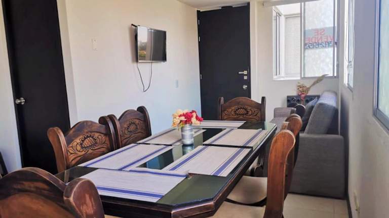 Das Apartment im Guaduales del Café A307 a 5 Minuten del Parque del Café - Montenegro bietet Ihnen ein komfortables und geräumiges Zuhause während Ihres Aufenthalts. Mit 2 Schlafzimmern, einem Wohnzimmer und einer gut ausgestatteten Küche haben Sie genügend Platz und Annehmlichkeiten, um sich wie zu Hause zu fühlen. Genießen Sie den Balkon mit Blick auf die Stadt und den Garten sowie den Flachbild-TV und das kostenfreie WLAN.