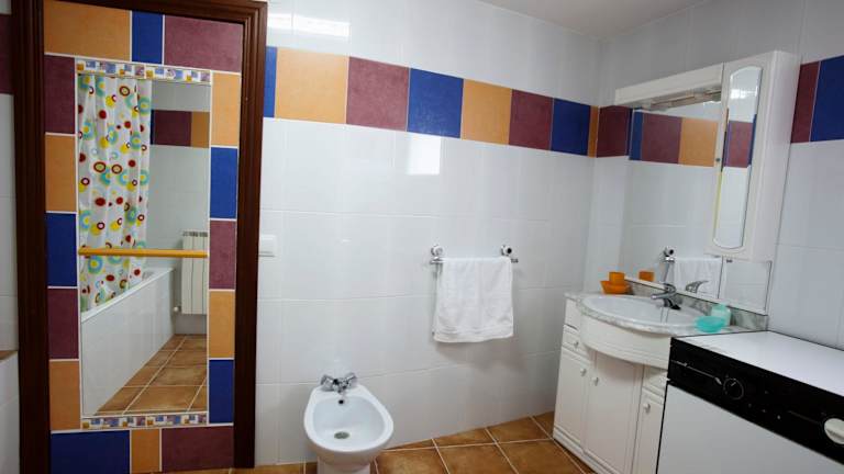 Das Apartment verfügt über 3 komfortable Schlafzimmer, in denen Sie nach einem erlebnisreichen Tag entspannen können. Die Küche ist voll ausgestattet mit einem Kühlschrank, einem Backofen und allem, was Sie zum Zubereiten Ihrer Mahlzeiten benötigen. Im geräumigen Wohnzimmer finden Sie einen Flachbild-TV und einen gemütlichen Sitzbereich. Das Apartment verfügt außerdem über ein Badezimmer mit einer Badewanne und ein weiteres Badezimmer mit einem Bidet. Eine Waschmaschine steht ebenfalls zur Verfügung.