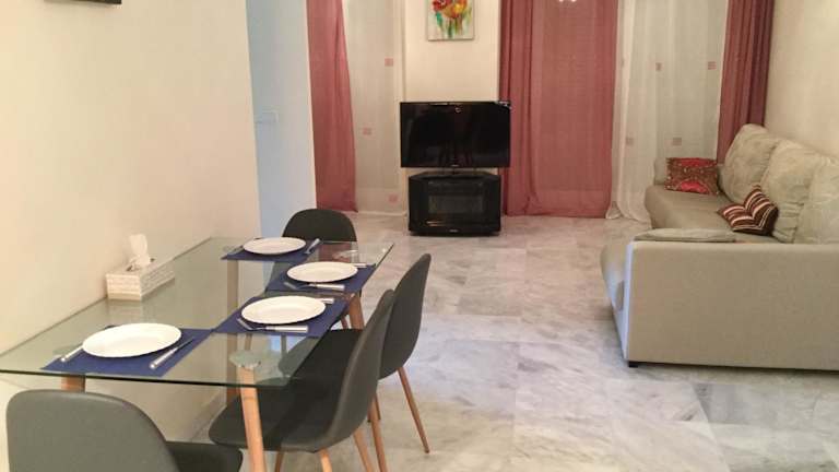 Die Ferienwohnung umfasst 2 Schlafzimmer, ein Wohnzimmer mit einem Satelliten-Flachbild-TV, eine gut ausgestattete Küche sowie 2 Badezimmer mit Bidet und Dusche. Außerdem gibt es eine Terrasse mit Stadtblick. Handtücher und Bettwäsche sind vorhanden.